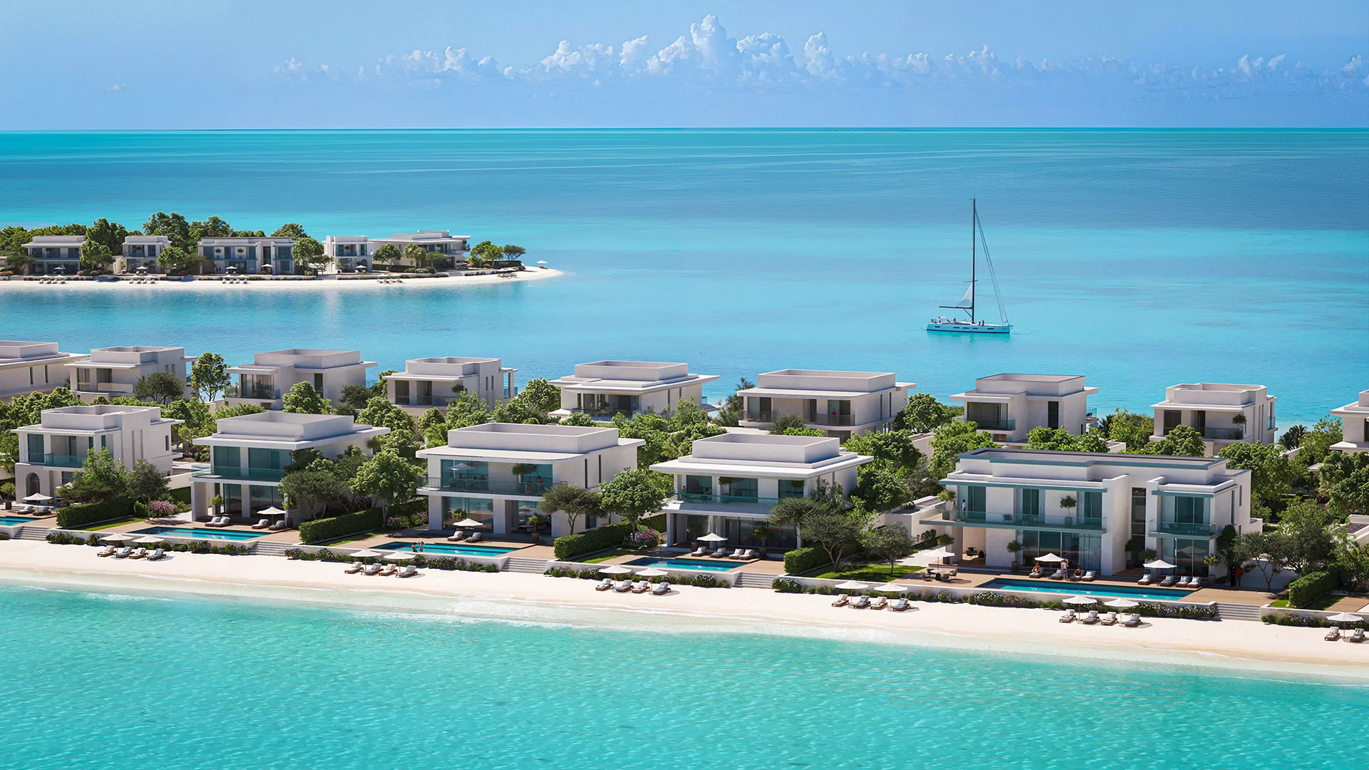 Located centrally within the masterplan, Views villas overlook the landscaped eco-parks, marina basin, and the island’s retail and hospitality spine. For residents who prefer an inward-facing island view over an open-sea position, these offer the richest connection to the community’s social infrastructure.